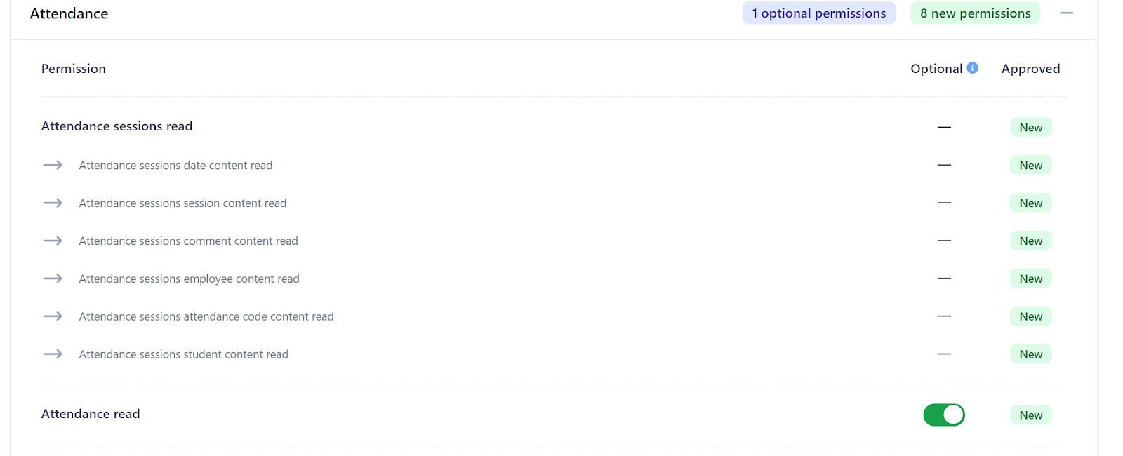 - If an application sets permissions as optional, you can turn the toggle on/off to confirm whether you are happy for this information to be available to the application or not. Please note: not all applications will have optional permissions.