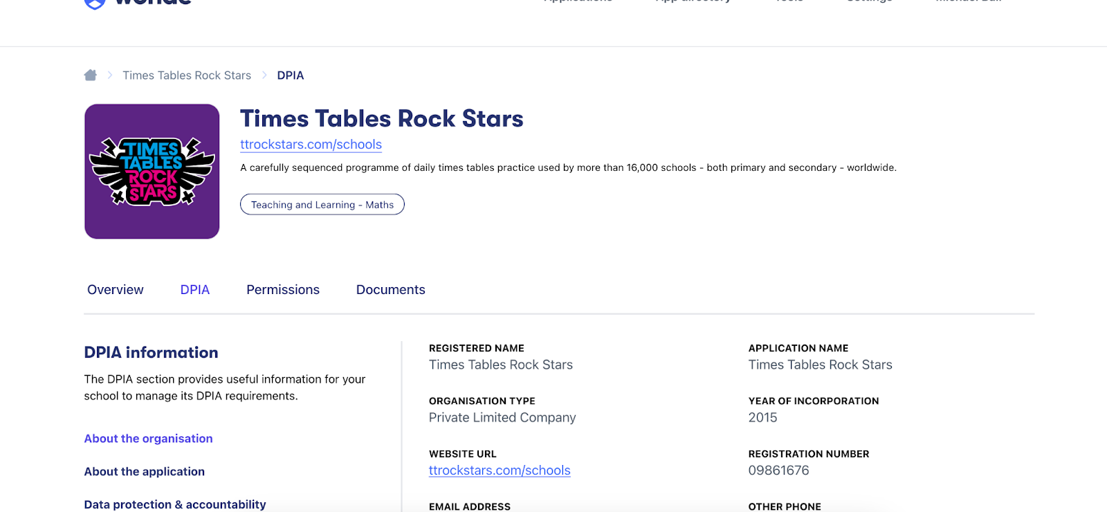 To support your decision-making process when purchasing an app, you can review an application’s data and security policies and information from within the application directory.
